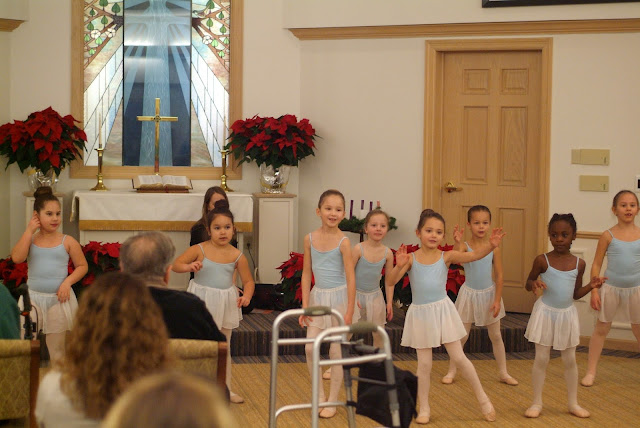 Olivia performed a little ballet dance for the residents at the nursing home, before passing out the cards we made. She was really nervous before the dance, but then she got out there, and her smile lit up the whole room!